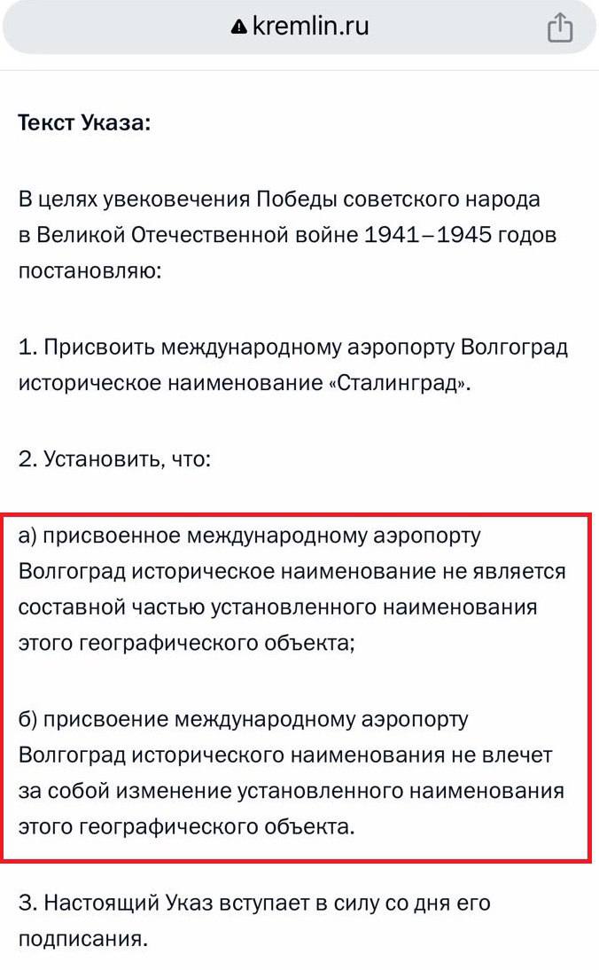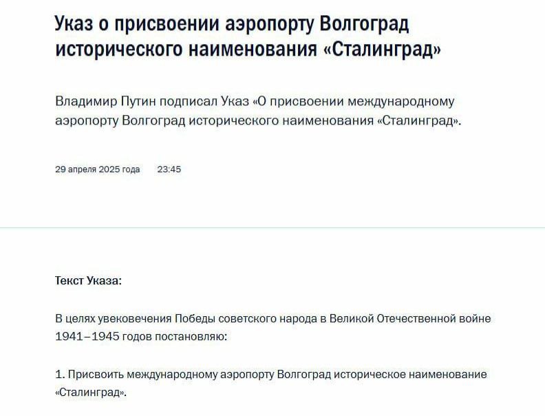 2️⃣ Putin renames Volgograd airport "Stalingrad".