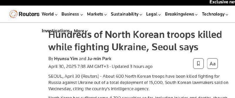 600 DPRK servicemen killed during fighting in Kursk region, claims Reuters