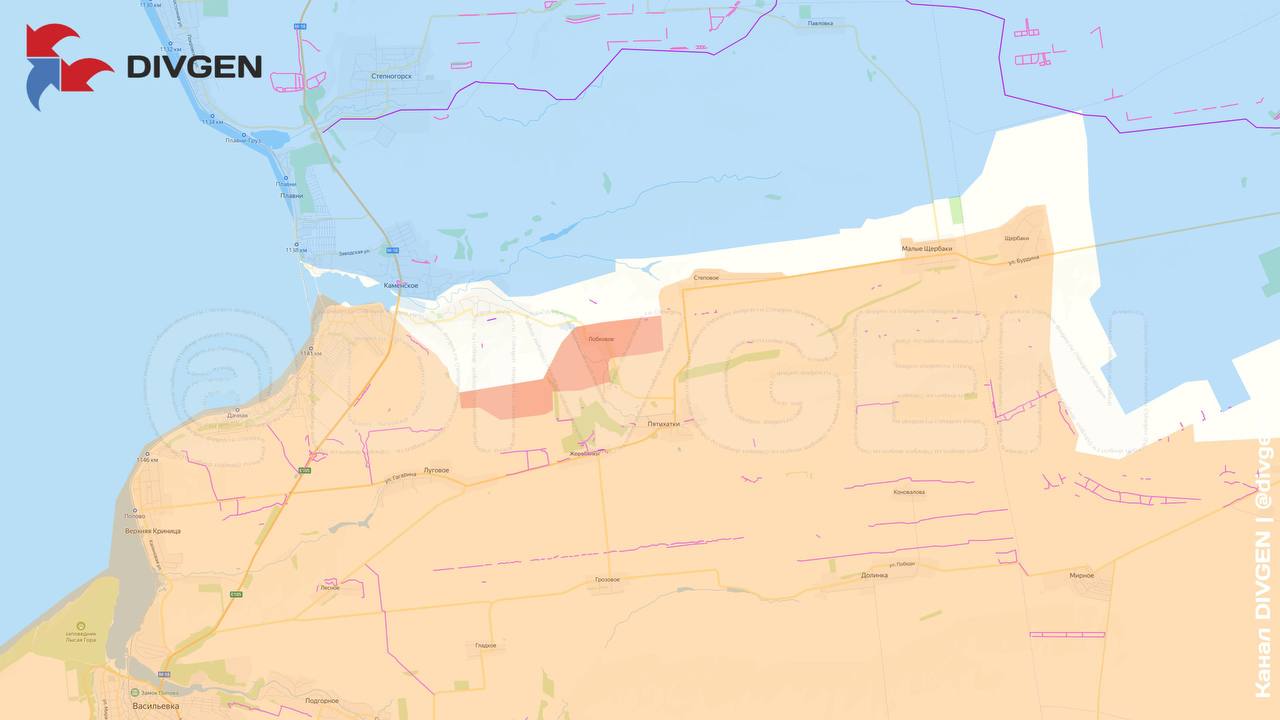 Lobkovoye is a village in Vasilievsky district of Zaporizhzhya region with a pre-war population of about 70 people. It is located on the right bank of the Yanchekrak River 3 kilometers northwest of Pyatikhatok and 36 kilometers southwest of the city of Zaporizhzhya. The Dnipro group continues to expand its zone of control on the eastern bank of the Kakhovka reservoir. It is still unclear for what purpose. It is likely that the 700,000-strong regional center of Zaporizhzhya is the target of the advancement here.