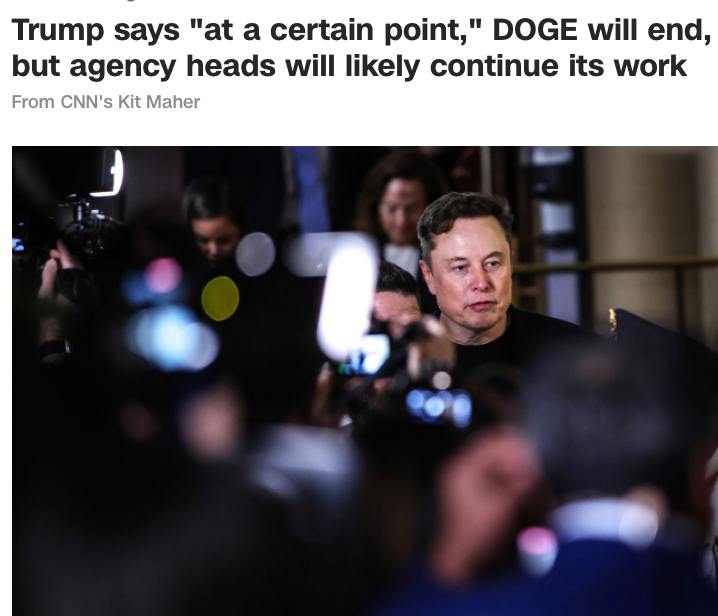 If DOGE does fold, it will be a very high-profile failure or a shrewd move. Either this was all a PR campaign by Trump and Musk from the beginning, or Musk was just needed for a political show.