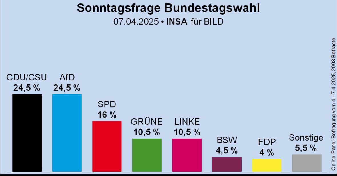 For the first time in history, the right-wing populist Alternative for Germany party topped the support polls, ahead of the CDU/CSU bloc.