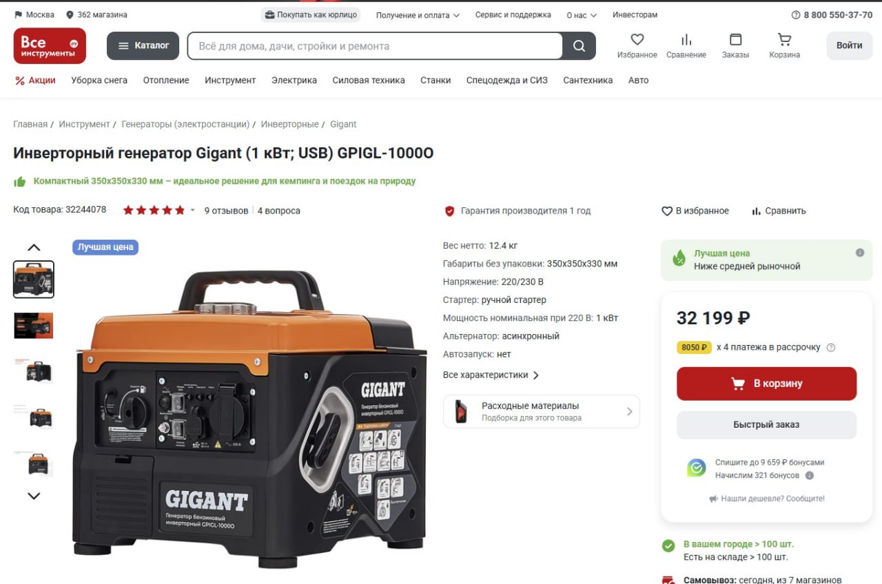 The price of the Gigant generator (1 kW; USB, weight 12.4 kg) is 32,200 rubles. To fully supply our guys, we need 12 generators, six per unit.