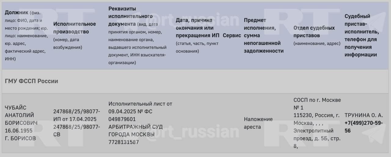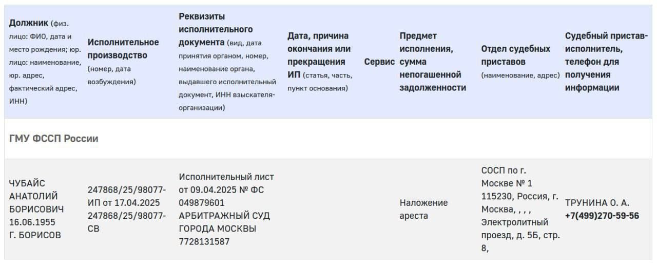 The bailiffs went after Chubais' property