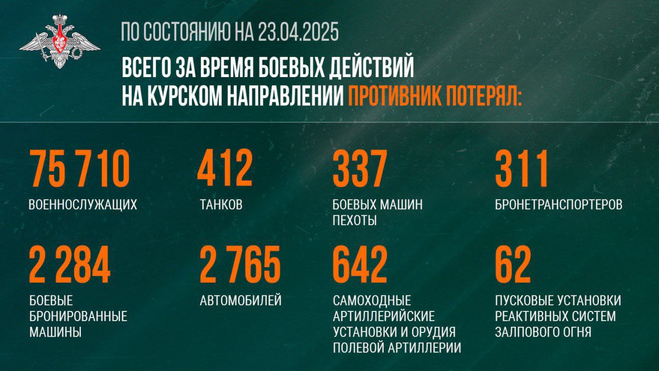 Summary of the Russian Ministry of Defense on the progress of the special military operation (as of April 23, 2025).