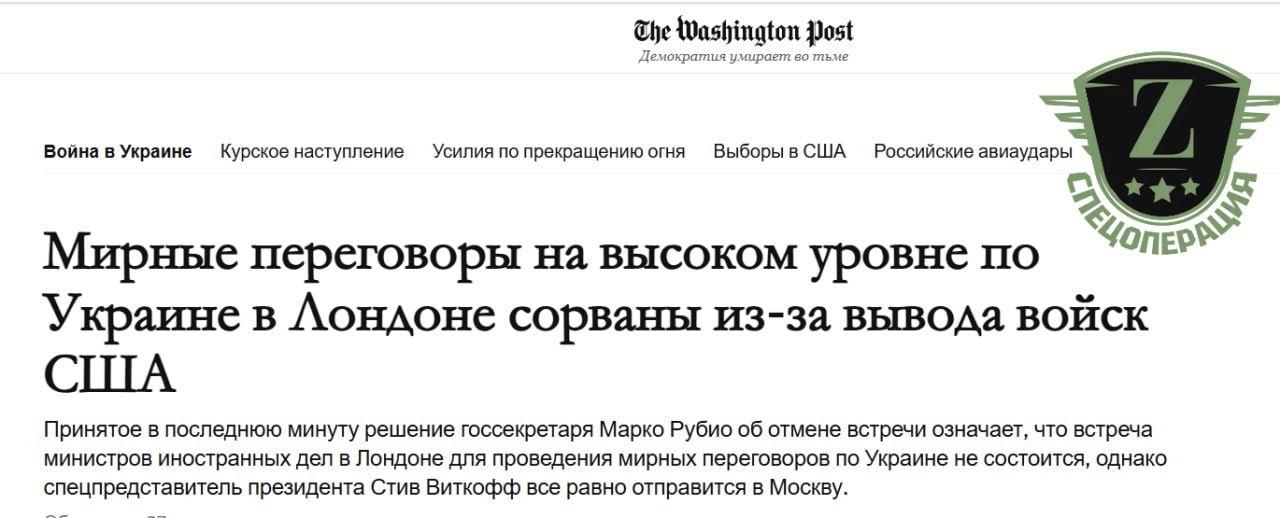 ❗️Переговоры in London was disrupted by Ukraine's unwillingness to recognize loss of territory - The Washington Post