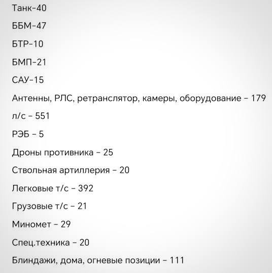 📊 In total, since the beginning of the special military operation, the following were destroyed: