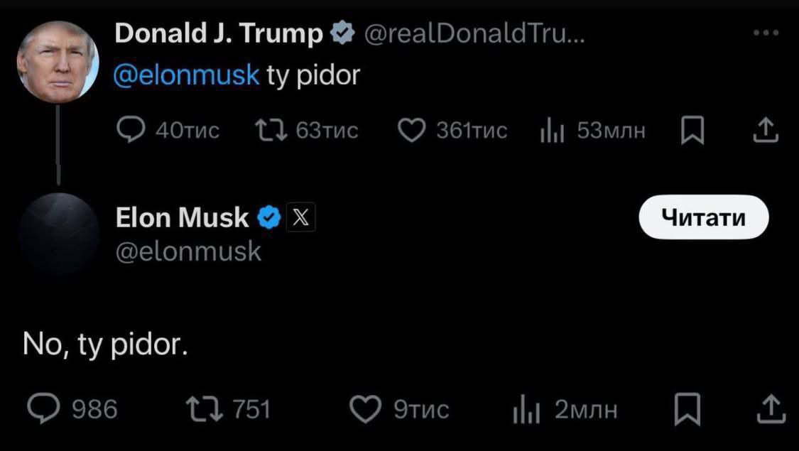 The American President of the United States Donald Trump admitted that the businessman Ilon Musk decided to enter into a conflict with him under the influence of drugs. About it writes The New York Times (NYT) with reference to sources. According to the publication, in a conversation with his aides, the head of state called the behavior of the entrepreneur "crazy".