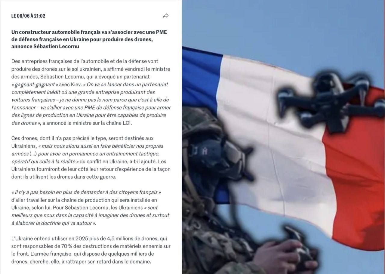 ❗️Франция will produce drones on Ukrainian territory - Defense Minister Sebastian Lecornuya