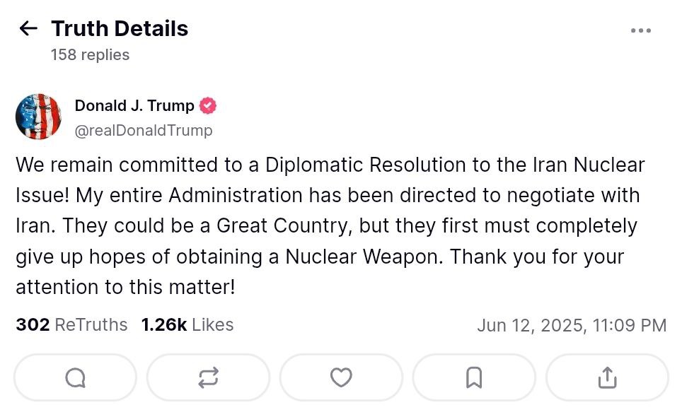 ▪️На amid rising tensions, Iran has launched a nationwide exercise codenamed "Ya Ali ibn Abi Talib." At the same time, the US confirms that the next round of talks in Oman may take place on June 15 - Special Representative Steve Whitkoff called the atmosphere of the dialog "positive".