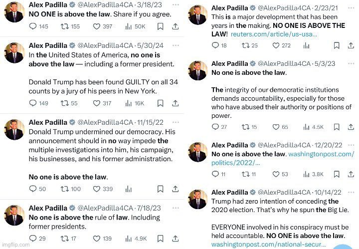 7⃣ During a press conference by Homeland Security Secretary Kristina Noem, California Senator Alex Padilla tried to interrupt the secretary and ask her a question, but was forcibly removed from the room and detained afterward. Senate Democratic Minority Leader Chuck Umer has already called for an investigation into "what the heck is going on" when a senator is forcibly dragged out.