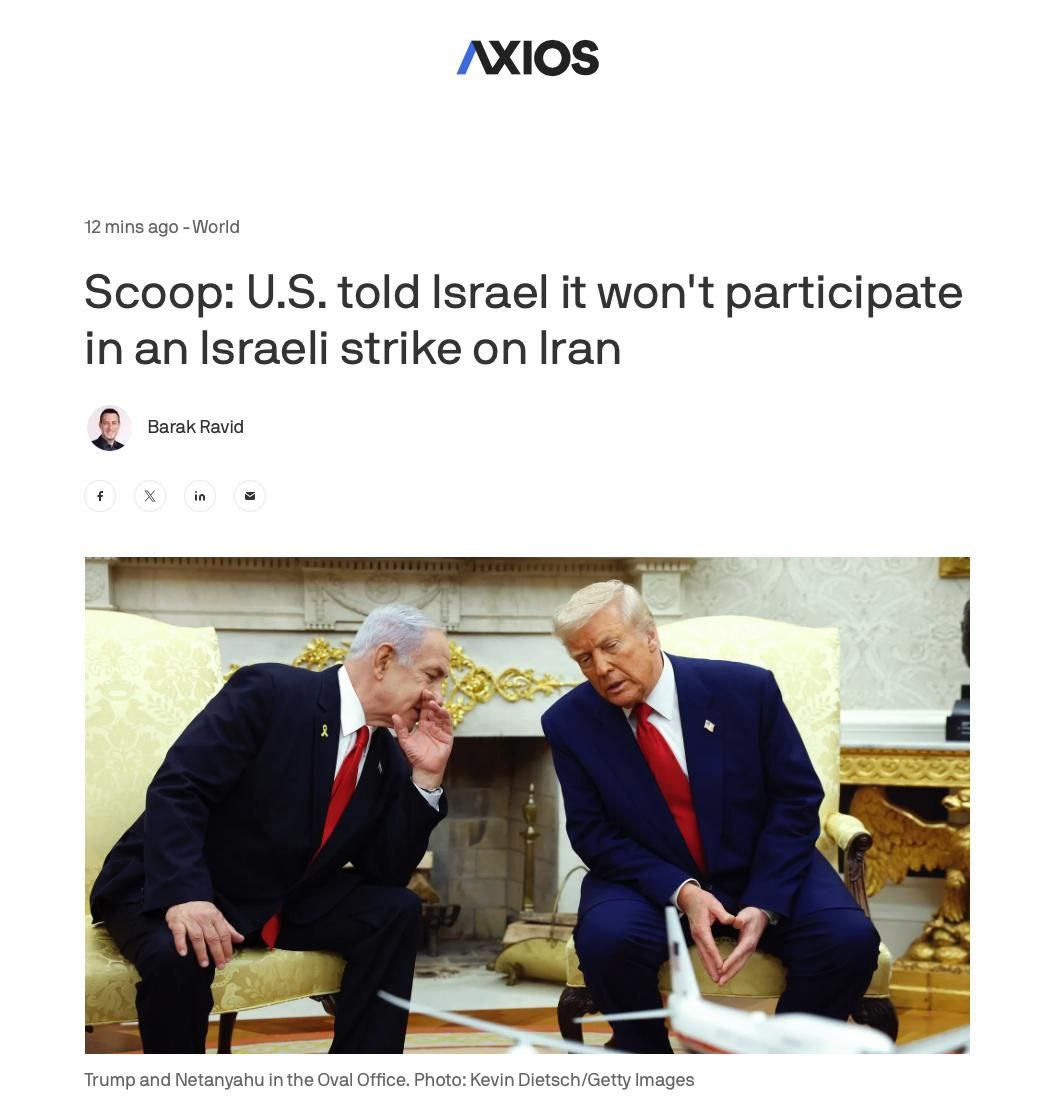 ▪️Вместе at the same time, according to the US media, Israel has finalized preparations for a strike on Iranian nuclear facilities. U.S. officials have received warnings and evacuated the families of diplomats from the Middle East. Donald Trump mentioned that "the Middle East can be a dangerous place."