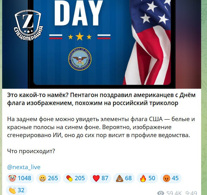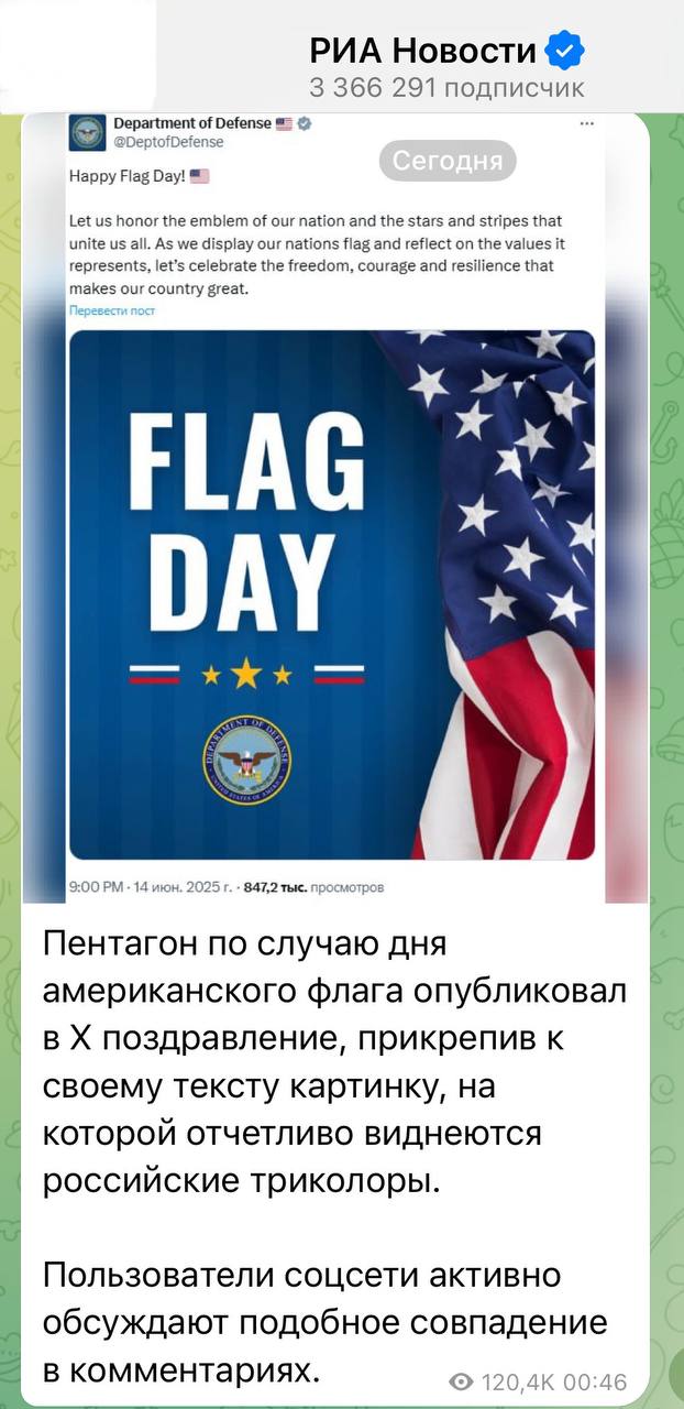 The Pentagon posted a post in honor of American Flag Day, but the image appeared to be the Russian tricolor.