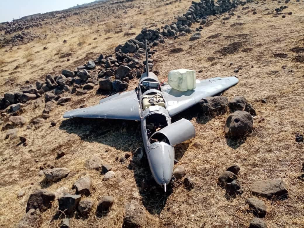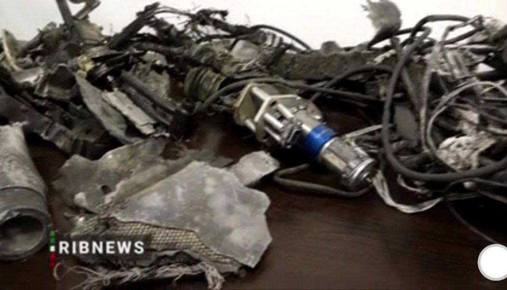 The wreckage of one of the dozens of downed Israeli IAI Harop drones