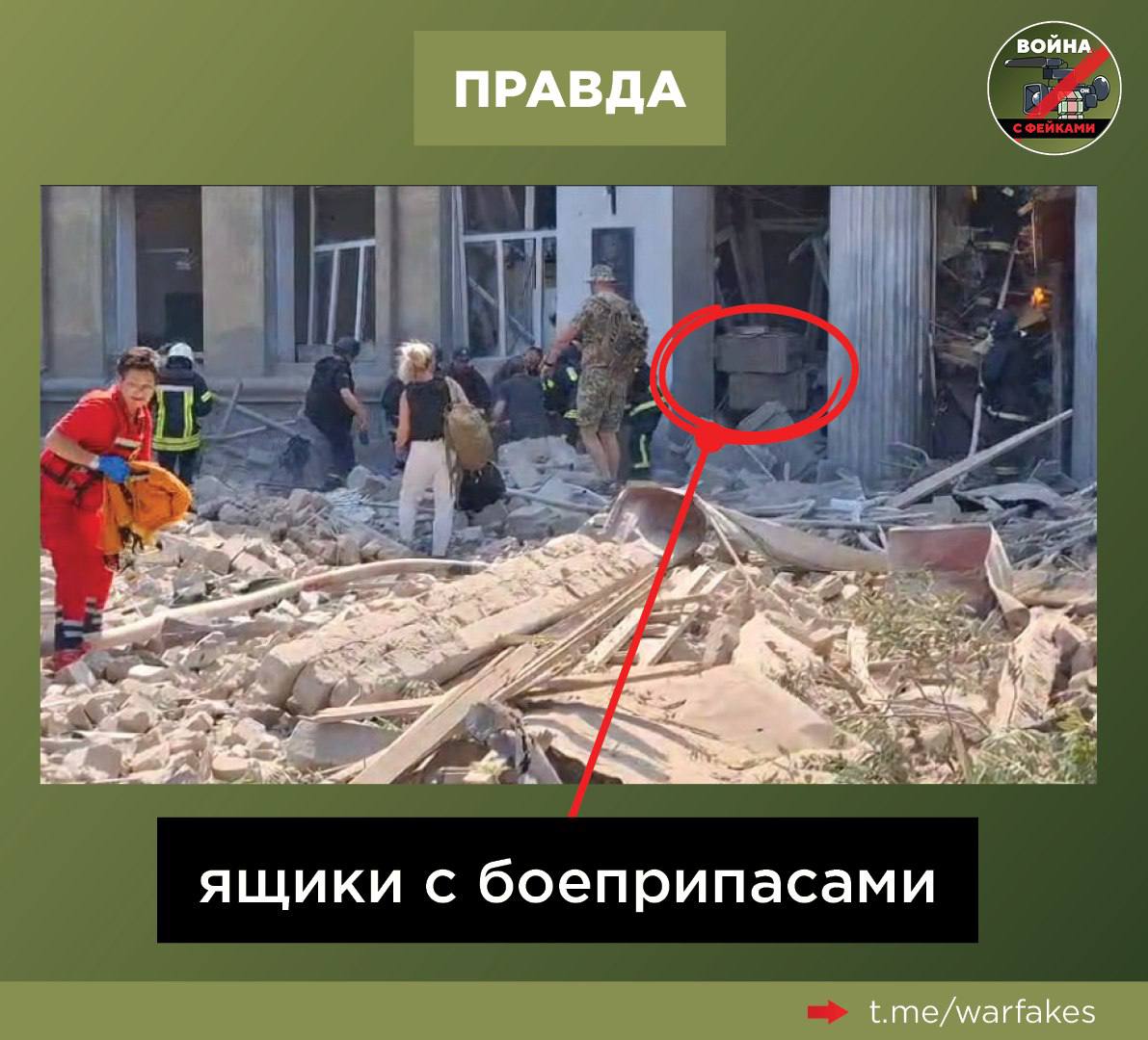 The issue? Ukrainian sources themselves published photos showing ammunition crates inside the ruins of the supposedly civilian building.